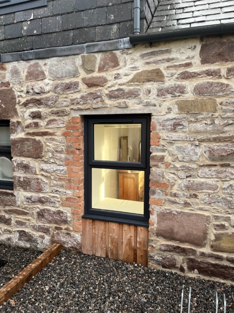 The existing entrance extension was removed and a new lean-to formed to create a circulation hall and new generous entrance area. This allowed the bedrooms in the rear wing to take full advantage of the width between the existing stone walls. Portions of stone wall were retained as exposed in the entrance area.
